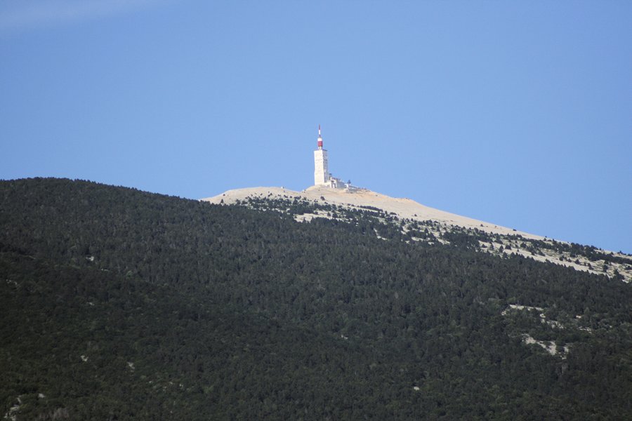 De wekker gaat om 6:20 uur. Zo vroeg? Ja, zo vroeg. En wel om de zonsopkomst te bekijken. Want als de zonsondergang mooi is dan moet het ook mooi zijn als hij opkomt. En het is mooi. Kijk maar naar foto 1 en 2. We gaan ook niet weer naar bed, want er moet weer een berg worden verzet. Ik (Harry) maak mij gereed voor de afdaling per fiets. Bij de afdaling lees ik van de gezichten de verbazing van de eerste klimmers. Je ziet ze denken: Wij zijn de eerste klimmers, dus moeten wij ook de eerste dalers zijn! Ik laat ze in die waan en begin de klim om 9:15 uur. Ik realiseer me dan, net als in Juni, opgeven nu geen optie is. De camper staat immers boven. Het eerste stuk is redelijk eenvoudig, maar halverwege wordt het toch serieus met stukken van 12%. Terwijl ik zwoeg maakt Lisette (begint bijna gewoonte te worden) de camper schoon en ze geniet van een herder die met zijn kudde schapen de berg over trekt. Als ik bijna boven ben meld ik Lisette dat ik er aan kom. Zij is dan in gelegenheid een paar foto's te schieten. Als ik de top heb bereikt kleed ik me om en dalen we met de camper af naar Malaucéne. Hier parkeren we op de Municipal camping onderaan de Mont Ventoux. |